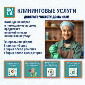 Выполним уборку в квартире / клининг любой сложности УСЛУГИ: • Генеральная уборка • Уборка после ремонта • Уборка...