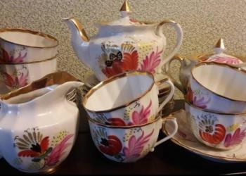 Фарфоровый сервиз фабрики Вербилок.Сахарница, чайник,молочник(2 шт.1 в подарок),6 чайных пар,6 десертных тарелок.