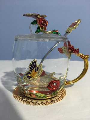 Чайная чашка с крышкой, ложкой и маленькой силиконовой салфеткой.